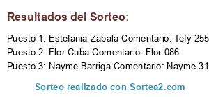 - Ganador 1: Estefania Zabala Comentario: Tefy 255