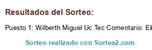- Ganador: Wilberth Miguel Uc Tec Comentario: Elian Uc ..participa para ir quieto ir.por fa
