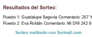 - Ganador: Guadalupe Segovia Comentario: 257 Yoha Diaz Sandra Guajardo