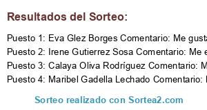 - Ganador 1: Eva Glez Borges Comentario: Me gustaría porque trabajan con productos de buena calidad y sería un bonito regalo de Nochebuena.