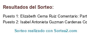 - Ganador: Elizabeth Cerna Ruiz Comentario: Participen Roxs V. López , Patricia Ariel N. Vargas, Eimy Hyo Ki Cerna Ruiz a ganar !!!