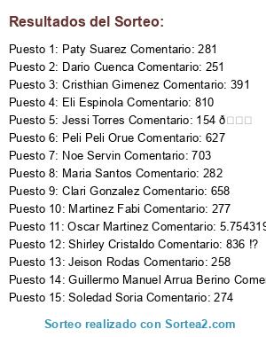 - Ganador 12: Shirley Cristaldo Comentario: 836 !?