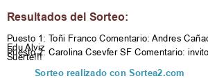- Ganador: Toñi Franco Comentario: Andres Cañadas Edu Alviz Suerte!!!