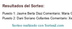 - Ganador: Jaume Berta Diaz Comentario: Maria Garcia Marc Garcia Lloveras !!