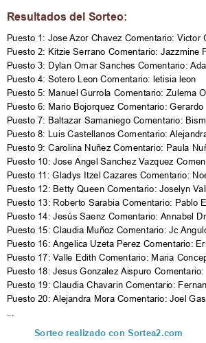 - Ganador 27: Mary Olivas Comentario: Andres Osuna siii👍