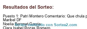 - Ganador: Patri Montero Comentario: Que chula participo Maribel DF Noelia Boronat Garcia Clara Isabel Rozas Romero Rocio Tomás Belda