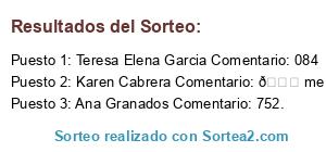 - Ganador: Teresa Elena Garcia Comentario: 084
