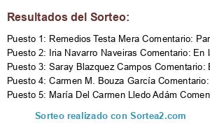 - Ganador: Remedios Testa Mera Comentario: Para mis nietos por su puesto!! Y tú Laura Cbf?