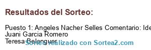 - Ganador: Angeles Nacher Selles Comentario: Ideal para la playa!!!! Juani Garcia Romero Teresa Belenguer
