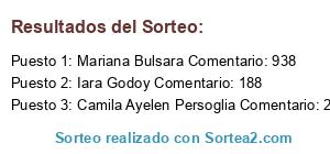 - Ganador 3: Camila Ayelen Persoglia Comentario: 265