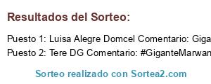 - Ganador 1: Luisa Alegre Domcel Comentario: GiganteMarwaneando