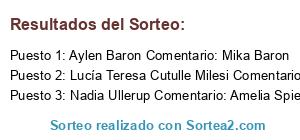 - Ganador 1: Rita Andersen Comentario: Ely Massán. Sonia Luna