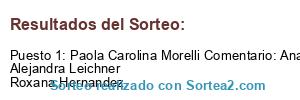 - Ganador: Paola Carolina Morelli Comentario: Anabela Erriquez Alejandra Leichner Roxana Hernandez
