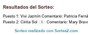 - Ganador: Vivi Jazmín Comentario: Patricia Fernández Iara Milagros