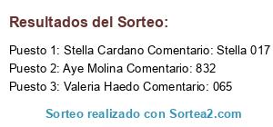 - Ganador 3: Valeria Haedo Comentario: 065