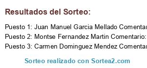 - Ganador: Juan Manuel Garcia Mellado Comentario: Un sorteo estupendo. Mar Longui Cruz Jurado,Maria Jose MP