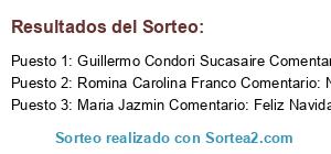 - Ganador 1: Guillermo Condori Sucasaire Comentario: Felices fiestas navideñas, que recordemos el nacimiento de Jesús en nuestros hogares, y que el amor nazca en cada uno de nuestros corazones