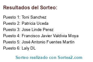 Lista de participantes: Sorteo realizado entre 6 participantes..