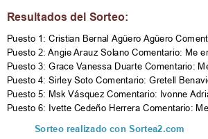 - Suplente 1: Angie Arauz Solano Comentario: Me encantaría ir con mi esposo Luis Diego Vargas Arias 😍