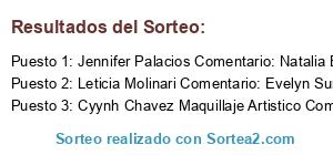 - Ganador 1: Jennifer Palacios Comentario: Natalia Britez Eliana Montes