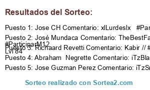 - Ganador 1: Jose CH Comentario: xlLurdeslx #ParticiparM12