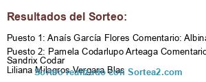 - Ganador 2: Pamela Codarlupo Arteaga Comentario: Carmen Arteaga Sandrix Codar Liliana Milagros Vergara Blas