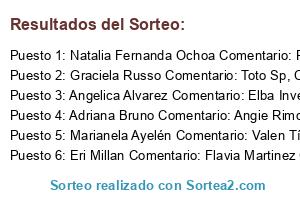 - Ganador 6: Eri Millan Comentario: Flavia Martinez Graciela Mansilla