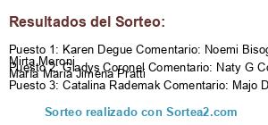 - Ganador 3: Catalina Rademak Comentario: Majo Diaz Rademak Isabel Gimenez Nelly Gimenez