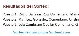 - Ganador 1: Rocio Baltasar Ruiz Comentario: Mamen Baltasar Ruiz Joaquín Moreno Díaz