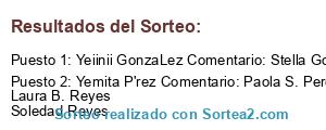 - Ganador 2: Jacquie Lopez Comentario: Erika Aguilar Marlen Cedillo Letty Cedillo