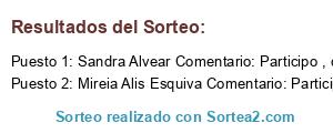 - Ganador 1: Sandra Alvear Comentario: Participo , comparto y a Montse Barranco Jimenez y a Selma Regina Martins para anotar nuestras quedadas !