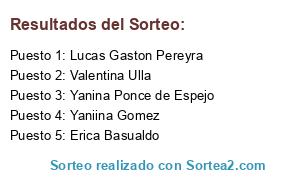 Lista de participantes: Sorteo realizado entre 108 participantes..