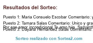 - Ganador 2: Tamara Salas Comentario: Unico y gran amor verdadero ...Te ame desde que senti tus primeras pataditas y hoy juntas disfrutamos cada momento Por ese amor incondicional Te amo hija Samantha Ainhoa