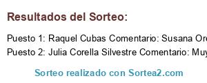 - Ganador: Raquel Cubas Comentario: Susana Orellana Lopez