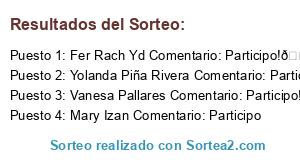 - Ganador 3: Vanesa Pallares Comentario: Participo!!!