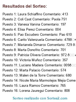 - Ganador 3: Vanesa Vanina Comentario: 197