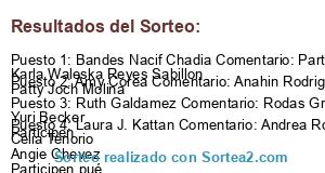 - Ganador: Bandes Nacif Chadia Comentario: Participen Karla Waleska Reyes Sabillon Patty Joch Molina