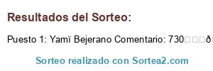 - Ganador: Yamï Bejerano Comentario: 730☘☘☘🐰🐰