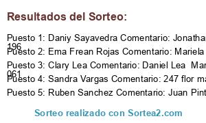 - Ganador 2: Ema Frean Rojas Comentario: Mariela Frean Rojas Nicolas Moreno 062