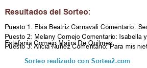 - Ganador 2: Melany Cornejo Comentario: Isabella y Oliva (melliz) Estefania Cornejo Maiira De Quilmes