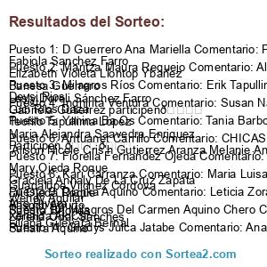 - Ganador 5: Yovana Pilar Zuñiga Linares Comentario: Susan lb Susana Camacho Cortés Susan cuzquen cuzquen Patricia Camacho Cortez