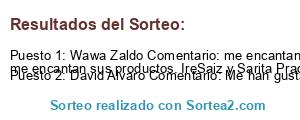 - Ganador: Wawa Zaldo Comentario: me encantan que es una tienda que lucha y cree en en sentido común de la crianza. me encantan sus productos. IreSaiz y Sarita Prado