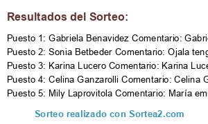 - Ganador 2: Sonia Betbeder Comentario: Ojala tengamos suerte con eate hermoso premio. Sonia Betbeder 931