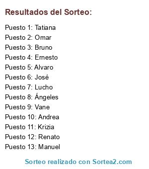 Resultados del sorteo:
