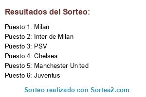 Lista de participantes: Manchester United, Inter de Milan, Juventus, PSV, Chelsea, Milan.