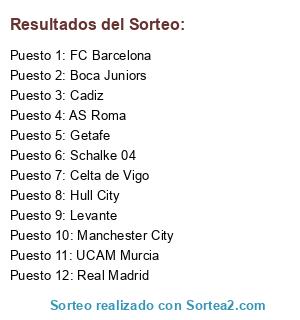 Lista de participantes: Cadiz, Getafe, Schalke 04, UCAM Murcia, Boca Juniors, AS Roma, Hull City, Levante, FC Barcelona, Celta de Vigo, Real Madrid, Manchester City.