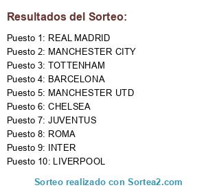 Lista de participantes: REAL MADRID, INTER, MANCHESTER UNITED, CHELSEA, ROMA, JUVENTUS, MANCHESTER CITY, LIVERPOOL, BARCELONA, ARSENAL.