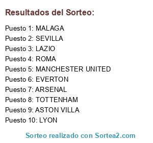 Lista de participantes: LYON, MANCHESTER UNITED, LAZIO, TOTTENHAM, SEVILLA, ASTON VILLA, ROMA, EVERTON, MALAGA, ARSENAL.