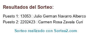 Lista de participantes: 225901 Juancarlos Carlos Delmazo Milan, 2172032 mauricio diaz, 790636 Cesar Mariano Enrico DeCossio, 1014294 jose alberto Lopez ruiton, 1756299 Felix Teodoro Cochachi Huaman, 780626 Sebastian Rainiero Yepes Llerena, 2330252 Yony Wilber Llanos Inquilla, 58488 Renzo raymundo Uema uyeda, 2380706 Ken Willian Solano Cueva, 120424 Carlos Adolfo Cogorno Buendia, 184201 Paulo Cesar Mancilla Chang, 62704 Gabriela Andrea Borja Loro, 2300693 Wonbin Wonbin Kim Kim, 1645604 Marco Polo Mejia Solis, 347872 Marcos Antonio Espinoza Quispe, 1903507 Alejandro Antonio Diaz Chavez, 42807 Diego AlONSO Hernandez Leon, 70848 RAUL ANDERSON OLANO GUEVARA, 299861 Carlos Enrique LazaroDeOrtecho Albrecht, 1861412 Victor Maldonado sartori, 113642 Michael Ribelino Broncano Geronimo, 288356 jose abelardo cuzquen rosas, 341954 Oscar Fabricio Postigo Carrera, 1815247 Lizmari alejandra bohorquez Fernandez, 2363684 Alan moises Bringas laguado, 60203 Edwar Ricardo Acero Shapiama, 66932 Eric Alexander Delgado Querevalu, 261994 Gonzalo Rufino Basurco Malaga, 28827 Ricardo Paucar Linares, 295382 Marco Antonio Razzetto Cruzado, 234117 Richard Richard Quispe Leguia, 1265612 Roberto Elias Bocanegra Aguirre, 150716 Erick Javier Alcazar Patilla, 2073864 Carlos Mauricio Ambia Ramos, 30284 JOEL Israel PEREZ Perez, 8687 pedro pedro zapata zapata, 950551 Alfredo Ernesto Vallejo Huaman, 300037 Jaydon Betuel Delgado Avellaneda, 1527932 Daigoro Sai Arce Copa, 832129 Gerson Jack Chang Pariapaza, 3183 carlos mario calderon bonifacio, 185350 YORDY Yvan LOPEZ, 55925 Victor Gino Mejia Beltran, 79398 Mathews harry Isla rucabado, 276146 JAIME Andre MIRANDA Sosa, 1020843 MARIA LUISA DIAZ JARAALMONTE, 70137 Juan Fabricio Diaz Vera, 1210088 Dorian Xavier Bendezu Martinez, 1806529 Paolo Herrera Chamaya, 156573 Jean Carlo Servan Delgado, 115075 Guillermo Andres Loo Pichilingue, 112886 Cesar Augusto Manayay Martinez, 77163 Wilfredo Nestor Sanchez Munoz, 75416 Willy Benjamin Vidal Bolivar, 179946 Mirko Antonio Muro Perez, 199493 Juan Carlos Huanacune Mamani, 1106061 Gaudencio Paulino Olortegui Palacios, 28905 Joe Sebastian Garcia Suarez, 2295983 EDGAR GAMERO GUTIERREZ, 300917 Thalia Tatiana Zavaleta Lujan, 986482 Alan Enrique Espejo DeLaTorre, 342633 Kevin Randall Valle Jimenez, 239347 Jerson Marvin Medina Chapilliquen, 98810 Diana JULISSA Flores AJENJO, 286660 Luis Jackson Quiroz Valverde, 148570 Widiam Jhonny Najera Diaz, 646251 Antonio Raul Kohatsu Doy, 1669471 Anthony Adrian Pingo Buolangger, 855952 Oscar Guillermo Elias navarrete, 2162918 renato castro alva, 120716 Jerson Fabricio Luna Zambrano, 348765 Rique Walcer Arrieta Perez, 74158 Juan Carlos Cabellos Quispe, 2370440 Karen Anais Granda Carrion, 78401 Nicole Kiara Portanova Seminario, 2143812 eriksson Wagner perez Vivanco, 1696153 José Enrique Silva Suarez, 215033 Wendy Yetsuko Shinsato Kinzyo, 21525 Larry Enriquez, 126812 yeral luke mejia romero, 201984 George Javier, 2341265 Gloria AnaKarem Hernandez Rojas, 421633 M moises M e, 129200 MARISA Gina FERRARI Maurtua, 206901 Blas MARIO Amasifuen AMASIFUEN, 9353 Jairo Anderson Limas Velasquez, 10488 Kevin Alberto Almonte Pareja, 2001469 gustavo chavesta, 2389742 JOSE MANUEL MONTES ESPINOZA, 79823 Luis Enrique Arias Cabrera, 1863455 Sebastian Thais Hoyos, 305914 Juan Dyusov Gomez Cordova, 15694 Alvaro Manuel Fernandez Fernandez, 959977 Gianluca Giusseppi Leyva Reyes, 576530 Percy Villa, 22963 Pedro Eduardo Canelo Quispe, 1286900 Pedro Fernandez Tinco, 478056 Roger Pacompia Bustincio, 1896790 Juan Carlos Loyola Ramos, 41969 walter Nilton osores Llona, 2078861 Juan Manuel Avalos Rodriguez, 2308268 Luis Angel Gonzales Huapaya, 121115 Luis Angel Ramos Aguilar, 80694 benjamin Josue espinoza Saavedra, 57132 Jefferson Jefferson Perez Villalta, 62265 cesar Miguel Angel berrios Fernandez, 71418 hans Terri rodriguez Silva, 462719 Jean Paul Gondonneau MartinDeRossi, 270989 cesar augusto barreda chalco, 68946 Roger javier Rodriguez rodriguez, 1098672 erika johana cruz padilla, 209880 Carla ROXANA Guevara OLAYA, 144738 Oscar Eduardo Alcedo Linares, 448305 Edwin Reyes DE LA Cruz, 80478 Percy Rolando Apaza Mamani, 119770 Carlos Marcelo Miranda Varillas, 966301 jimy nino lazaro diaz, 119581 Segundo Manuel Valverde Nunjar, 711504 Andres Marcelino Castro Fernandez, 1913196 Juan Enrique Andia Hernani, 36570 Bill Kayson Cordova Zegarra, 1592843 Luis Martin Matsukawa Delgado, 73212 Heber Lucio Ricse Chuquillanqui, 1881100 Daniel Luis Linares Obispo, 251570 Dennise Sinthia Arismendi Bornica, 282395 Guillermo Eduardo Mendoza Outten, 288763 Luis enrique Minchola murguia, 2247512 Carlos alfredo Medina bravo, 6260 Jorge Enrique Zamata Zegarra, 75653 Cristhian albert Iman carmen, 115873 praxedes cordova, 188906 JUAN ENRIQUE CORDOVA WOO, 283896 Fernando Javier Cieza Perez, 116254 Javier Argandoña Jimenez, 275980 Lizeth Garcia LOPEZ, 2103103 EVER MENDOZA VASQUEZ, 1171228 Dante David Ayvar Vallejo, 189624 Alcides Meneses Najarro, 70177 Jhon brayhan CHOQUE ismodes, 434178 Ciro ALBERTO Aliaga ALIAGA, 2381156 Richard Moises Cordova Meneses, 2054844 Tabata cynthia Chavez Fasabi, 2006998 Jheferson Jho Cabanillas San, 2051661 David Gustavo Lozano Rodriguez, 78382 Pamela Cristhina Casma Yncio, 323944 Miguel uri fernandez quispe, 265652 Bertha Corina Cardenas Guerrero, 1961283 arturo Martin gutierrez Peña, 956242 Abner NEFTALI Castillo GARCIA, 99787 DANIEL Fernando Tinoco Blanco, 310868 Juan Vilchez, 77219 Marco Antonio Fajardo Barbachan, 6062 Juan Manuel Canedo Ranilla, 553058 Jacqueline Lorena Giurfa Martinez, 7693 Daniel Lopez Morales, 1855397 Giancarlo Perdo Juarez Catalan, 110607 Paulo Cesar Roa Perez, 864415 Nelson Renato Porras Rodriguez, 105373 Carla MARIA Chinchayan CORNEJO, 2375006 alfredo agustin lopez lizarbe, 766921 jose Antonio Bartolo Nieto, 526110 OSCAR Omar IZQUIERDO Michelini, 1156021 Rocio Elizabeth Mercedes Bobadilla, 276382 Max russbell Lozano reyes, 205585 Alex Nolberto Navarro Castro, 128642 Daniel Antony Rosales Ramos, 610172 Julio Ces