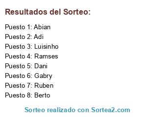 Lista de participantes: Berto, Ruben, Adi, Abian, Gabry, Dani, Ramses, Luisinho.